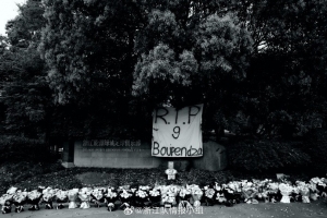 球迷3在留言卡写道:安息吧,九号战士,Aaron Boupendza,永远照耀我们前进!